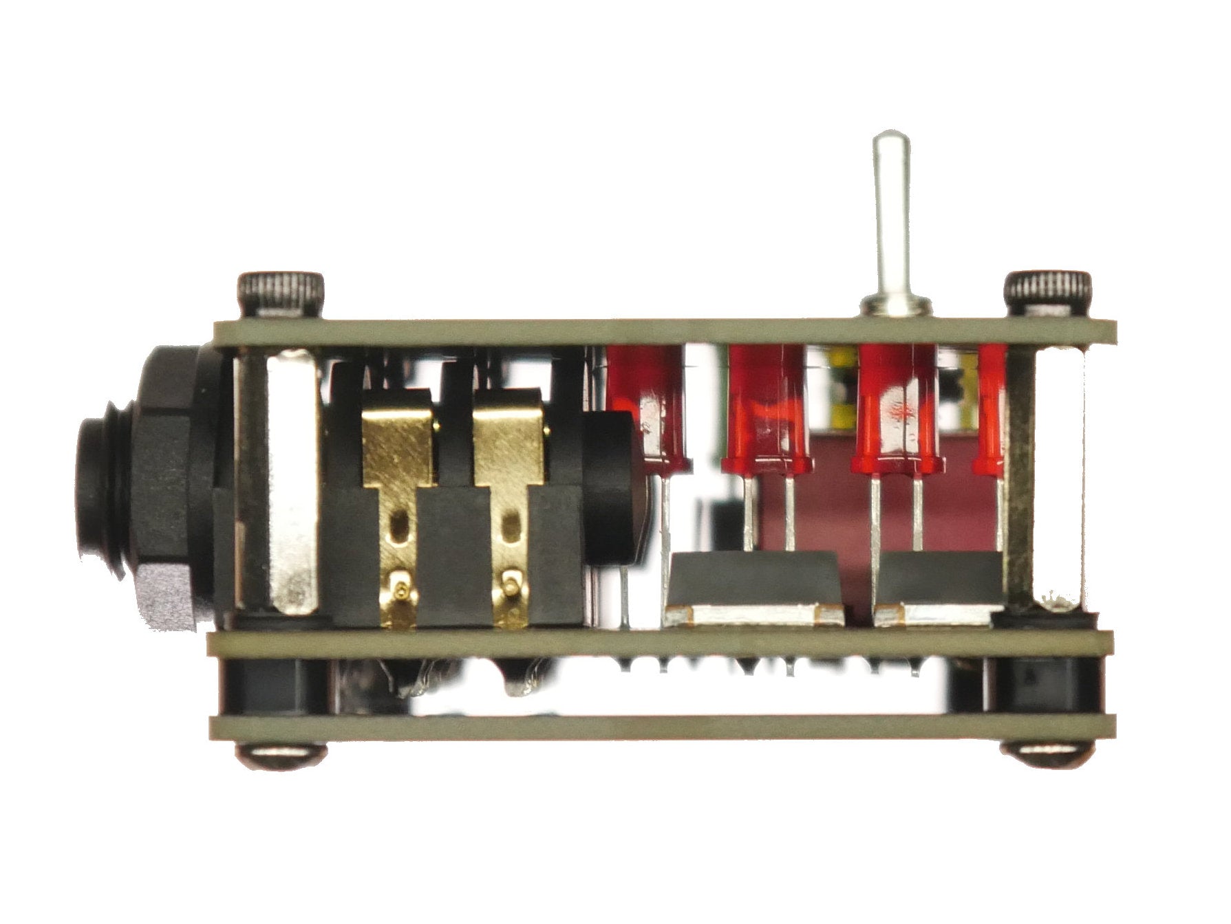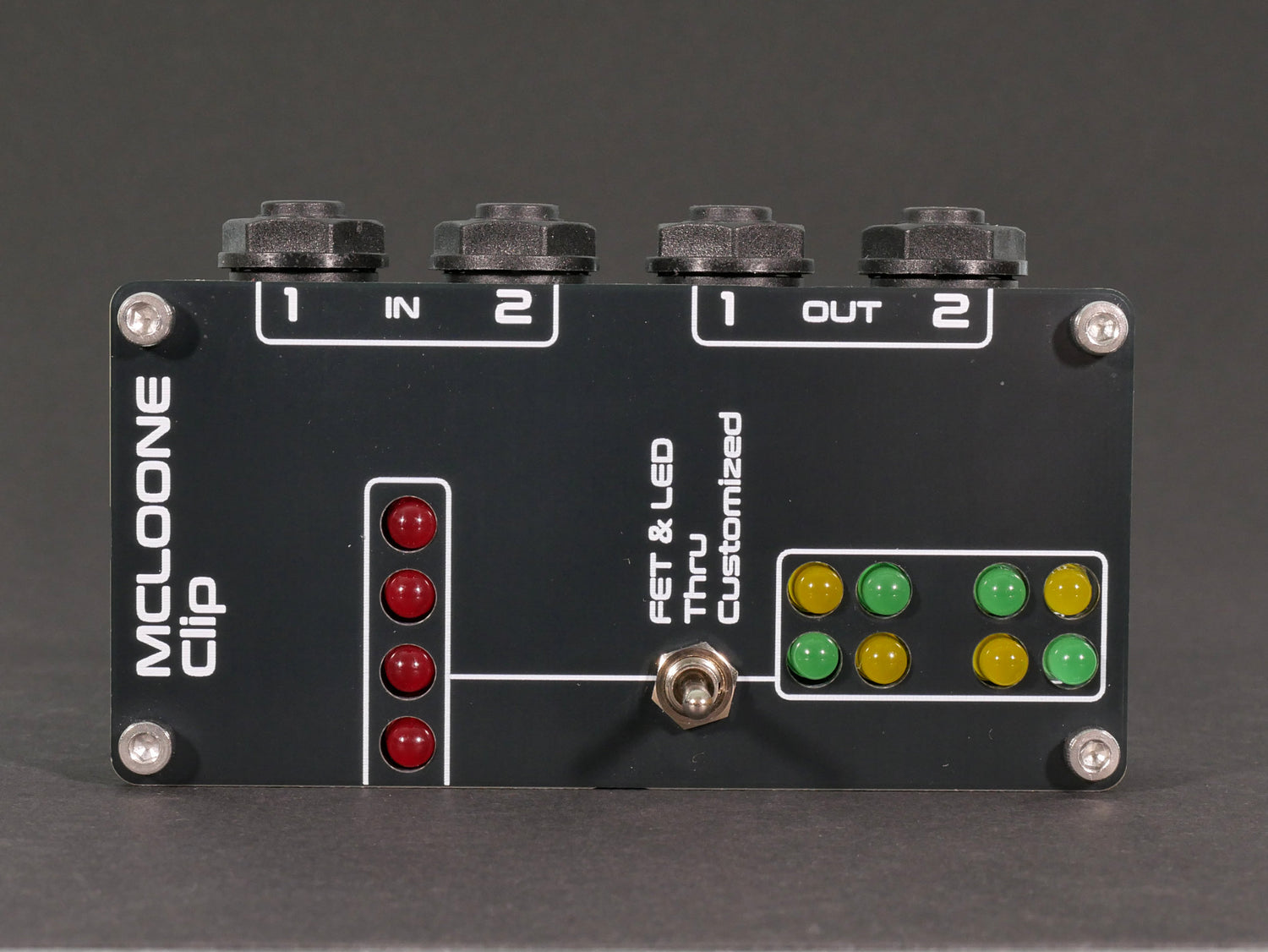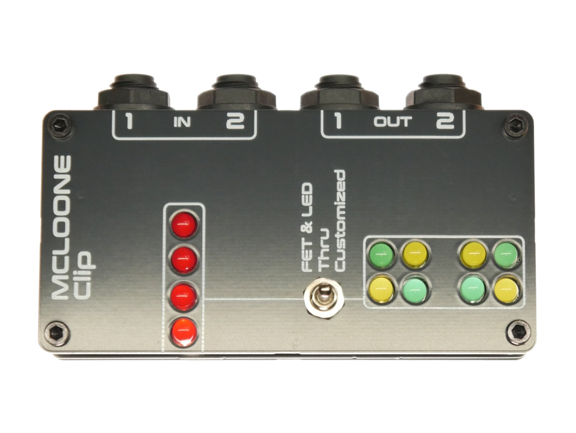 Utilizing MOSFET as well as customizable LED diode configurations, a variety of waveform clipping distortions are possible.