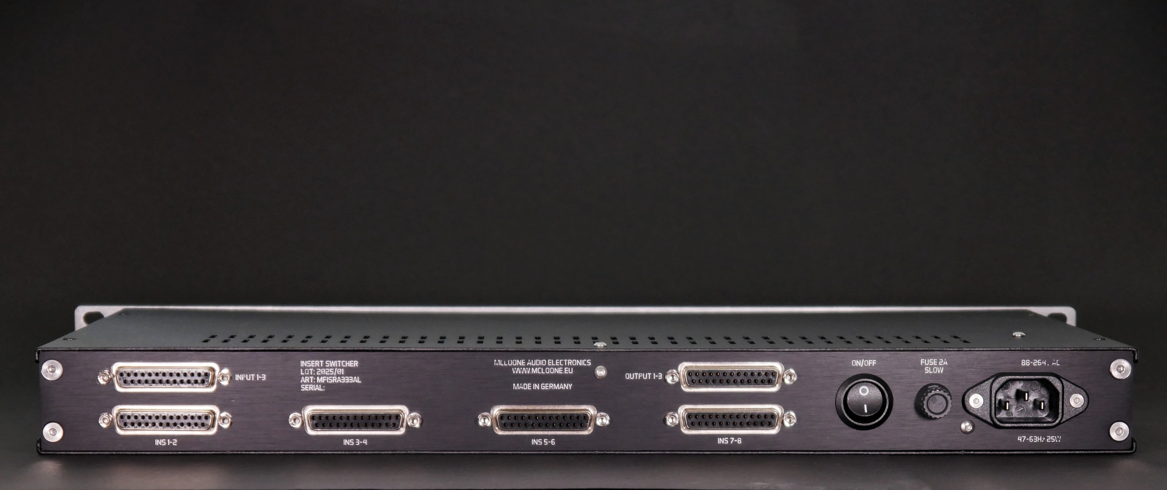 Inserts: 8x Stereo Balanced Input & Output on DB25 connectors